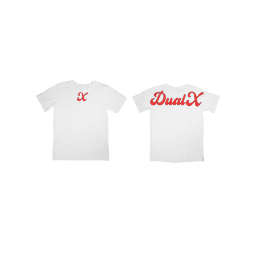 A clean start, a bold mark. The white tee with the red ‘DualX’ back print speaks of clarity and courage in every step forward.